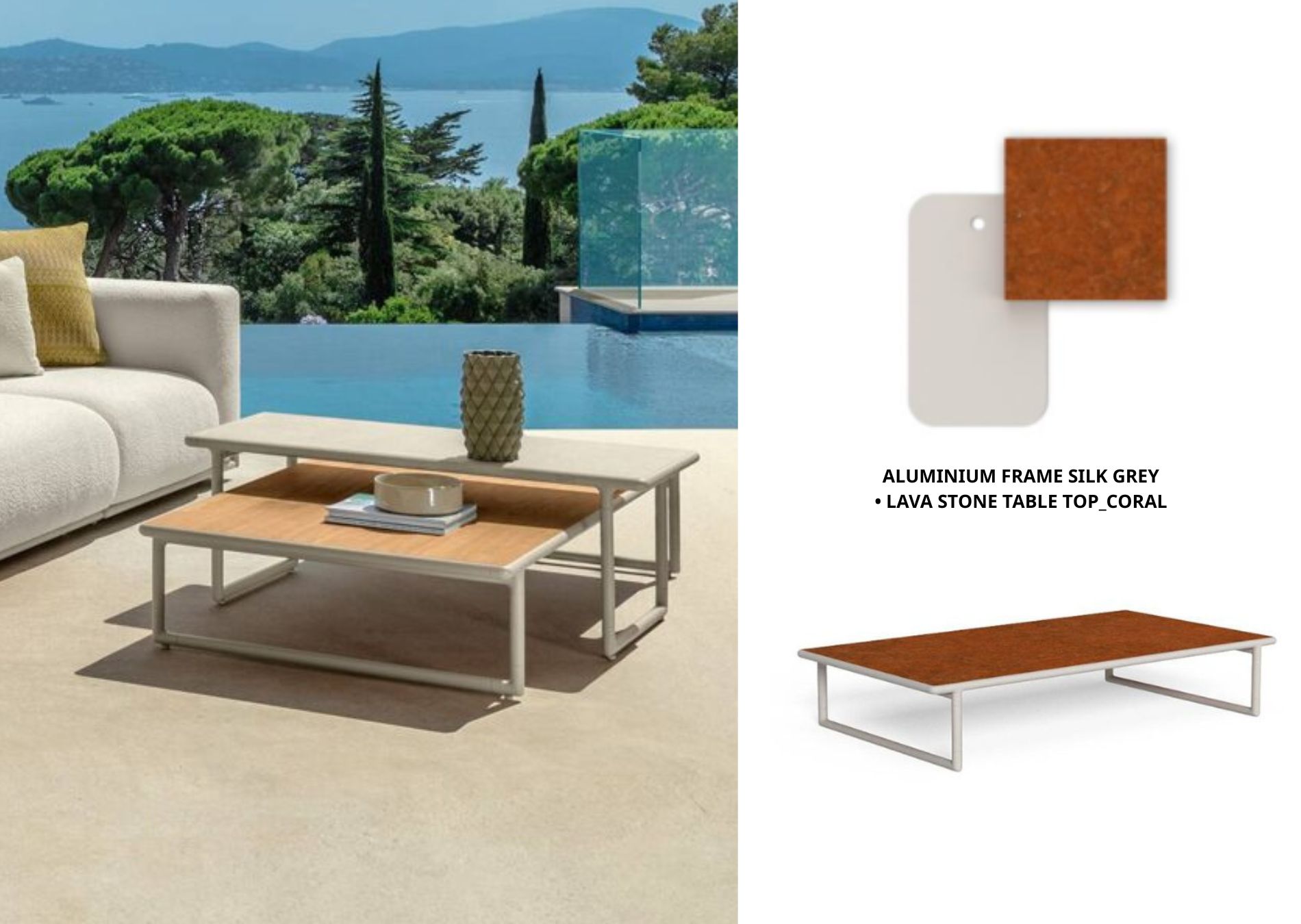 ALUMINIUM FRAME SILK GREY LAVA STONE TABLE TOP_CORAL